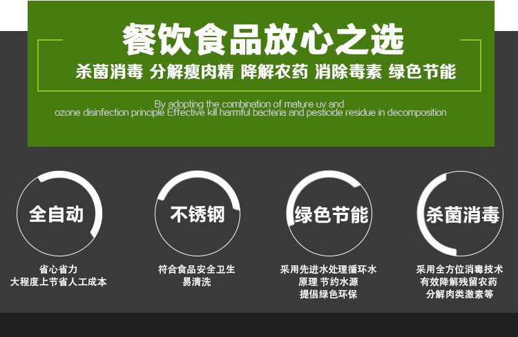 眾得力廚具為您提供食品消毒洗菜設(shè)備,本系列食品消毒洗菜機(jī)有1.2米和1.5米兩款,可定做其他規(guī)格食品消毒洗菜設(shè)備,本款為1500型豪華洗菜機(jī),帶臭氧消毒,活性炭吸附,水泵高壓沖擊漩渦清洗,流水內(nèi)循環(huán),節(jié)約水源,清洗消毒一體,清洗效果好。
