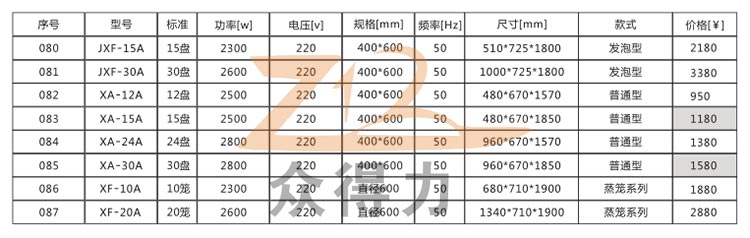發酵箱系列產品詳細參數及統一報價: