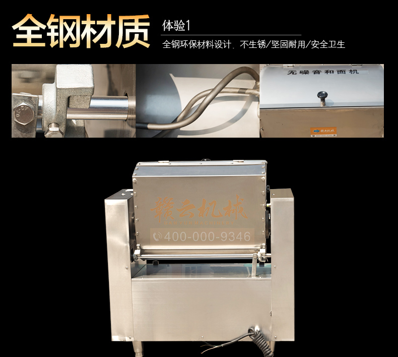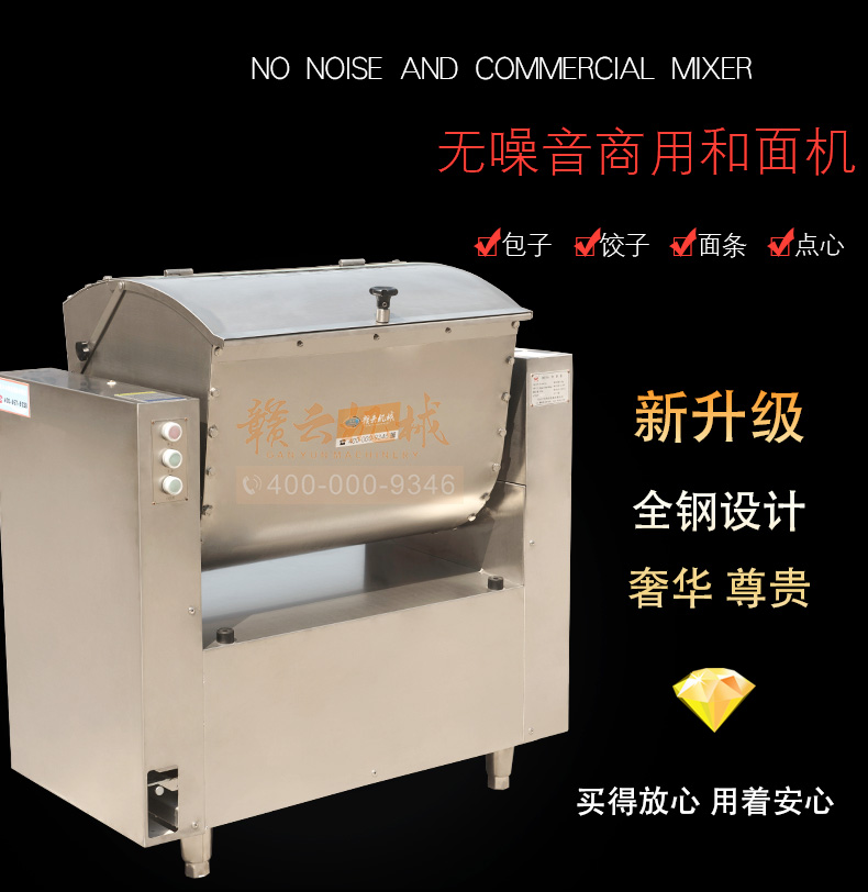 全鋼和面機(jī),工程系列50kg和面郎,整機(jī)外殼不銹鋼材質(zhì),絞龍和和面桶均為食品級不銹鋼,安全衛(wèi)生,適合中央廚房面點(diǎn)加工,面食加工廠生產(chǎn)和面攪拌之用。本系列產(chǎn)品有25kg和50kg兩種款式