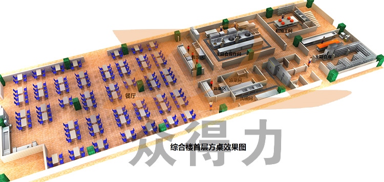 一樓食堂整體3D效果設計